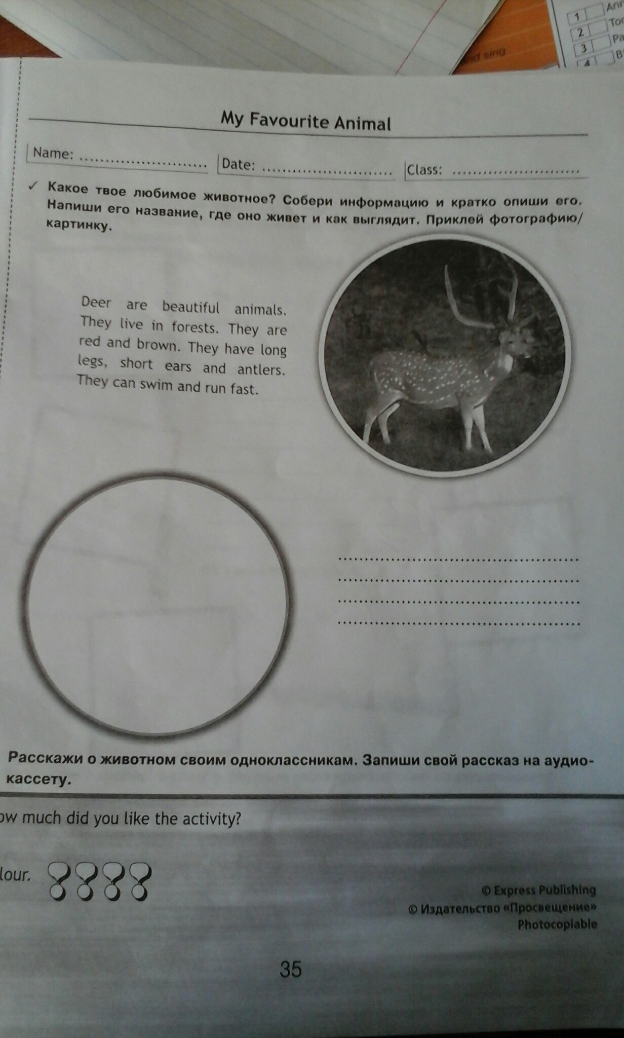Какое твоё любимое животное собери информацию и кратко опиши его напиши его название, где она живёт и как выглядит! Написать надо по english !По образцу.