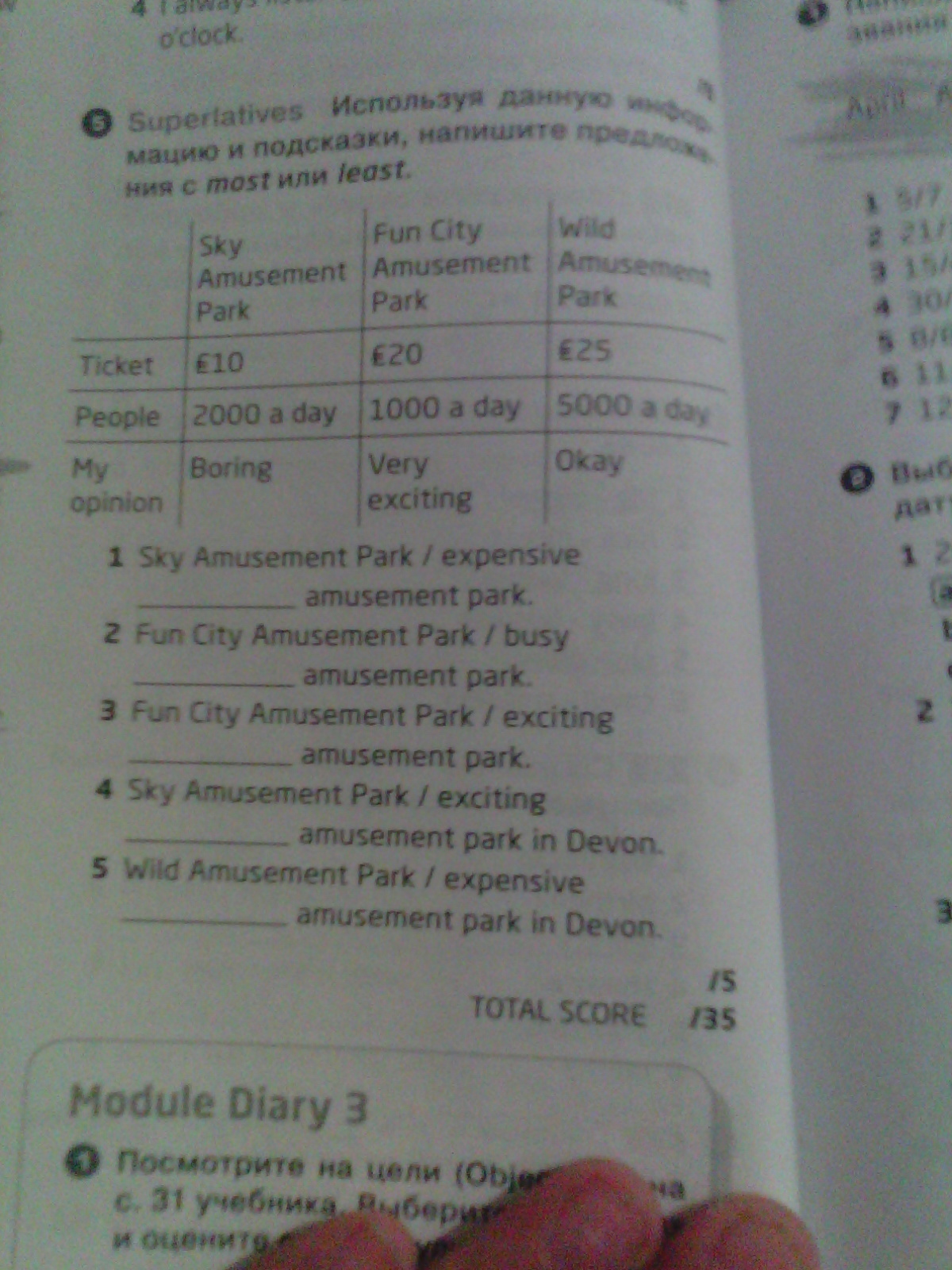 1) the least expensive 2) the least busy 3) the most exciting 4) the least exciting 5) the most expensive
