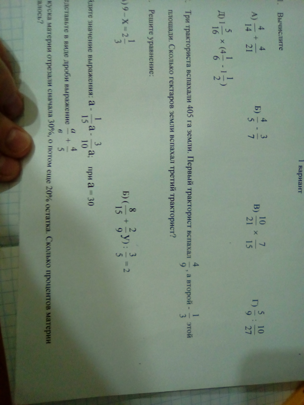 1) 4/9+1/3=4/9+3/9=7/9(части) - вспахали два тракториста