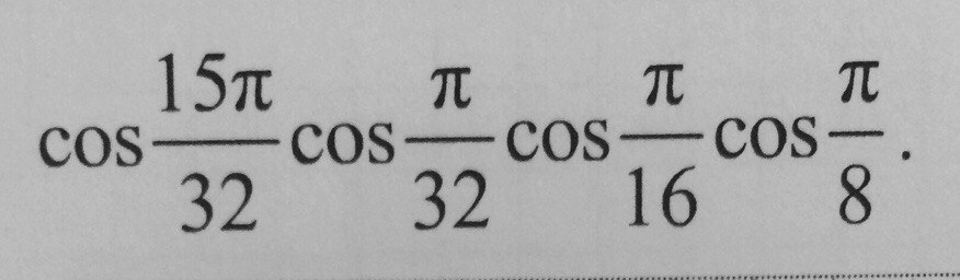 сos15π/32*cosπ/32*cosπ/16*cosπ/8=sinπ/32**cosπ/32*cosπ/16*cosπ/8=