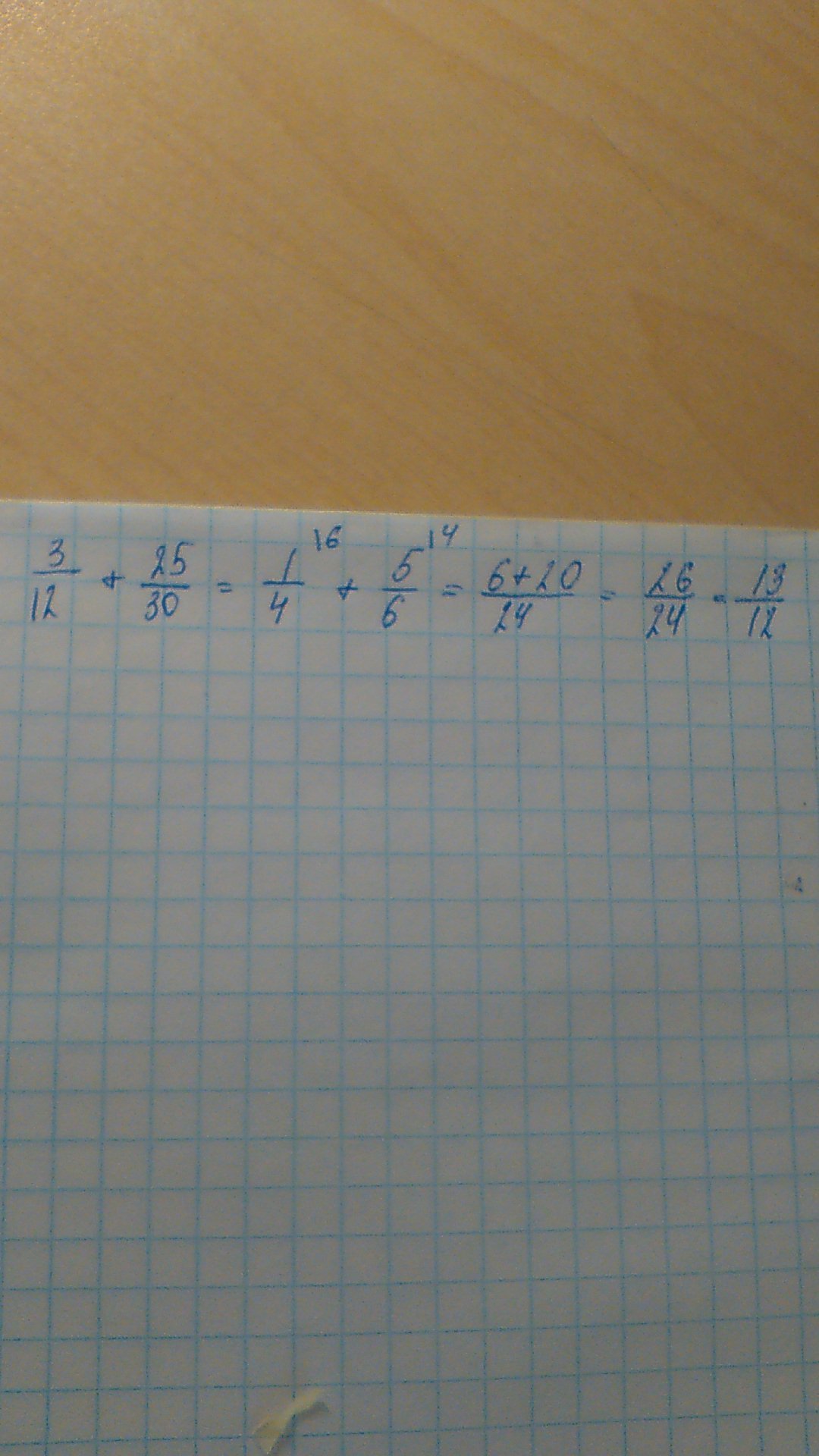 3/12 + 25/30 = 1/4 + 5/6 = (НОК=12) = (3+10)/12 = 1 1/12 - ОТВЕТ