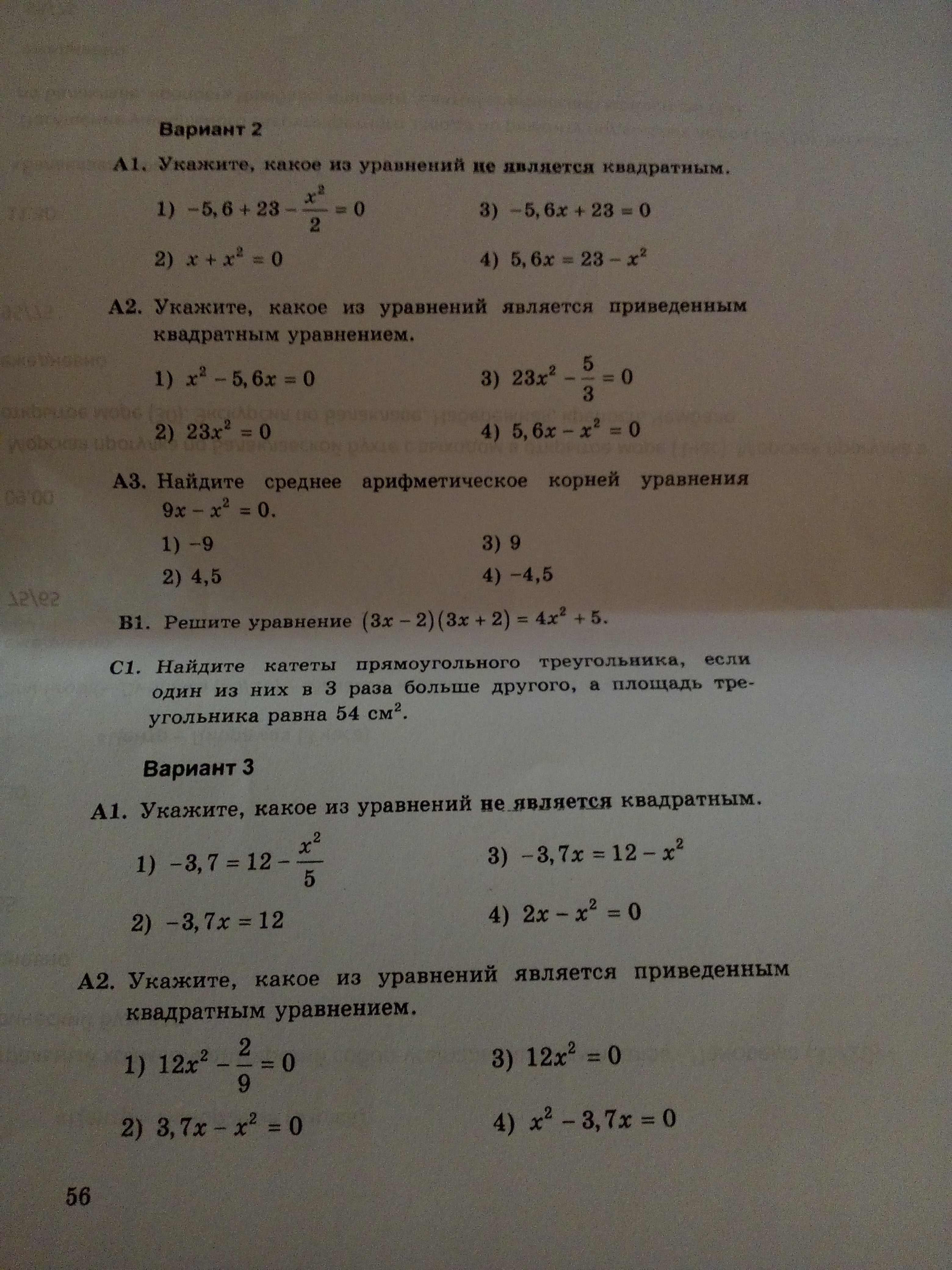 В следующих заданиях о которых вы просили: А1 уравнение 3 так как нет х^2; А2 уравнение 1 является приведенным так как при x^2 а=1, и не путайте с уравнением 4 там а= -1
