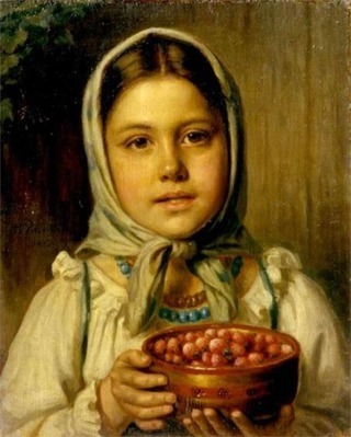 Картина Н.Рачкова "Девочка с ягодами мне очень понравилась, на картине изображена девочка и у неё в руках миска с ягодами . Девочка одета в сарафан на голове у неё платочек, у девочки Карии глаза .Н.Рачков очень хорошо изобразил девочку с ягодами!