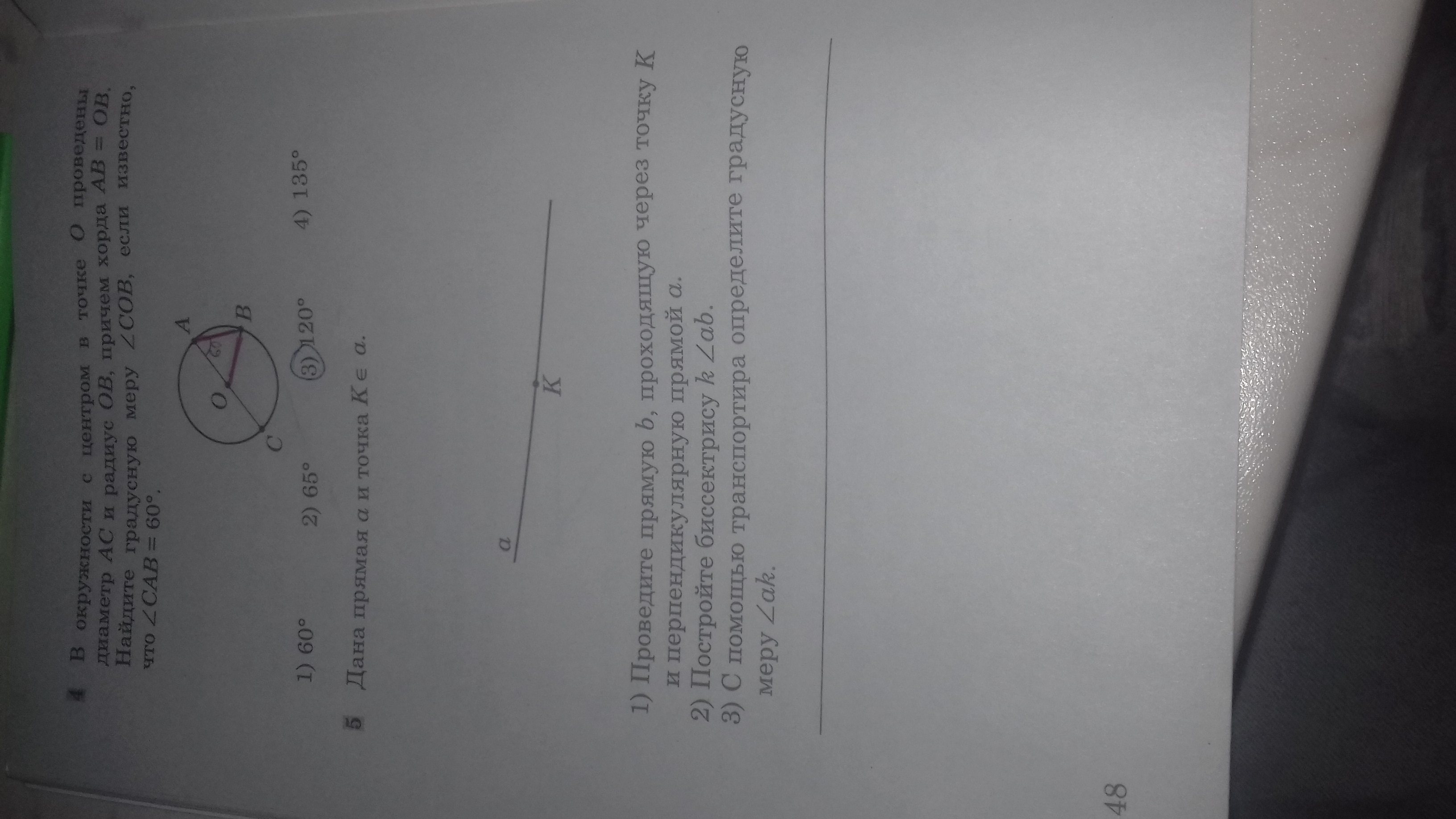 ∠ak = 1/2∠ab = 1/2•90° = 45°.