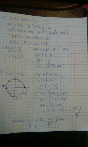 sin2x+cos2x=1 на промежутке (0;1,5П)