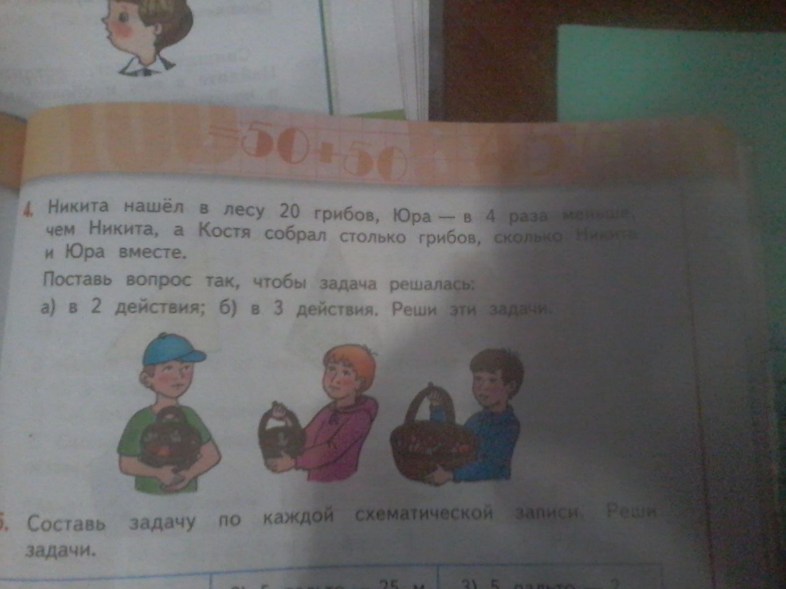 1.20:4=5(гр) 2.20+5=25(гр) 20+(20:4)=25(гр) Ответ:Костя собрал 25 грибов