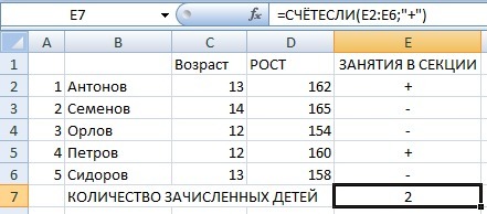 =СЧЁТЕСЛИ(E2:E6;"+")