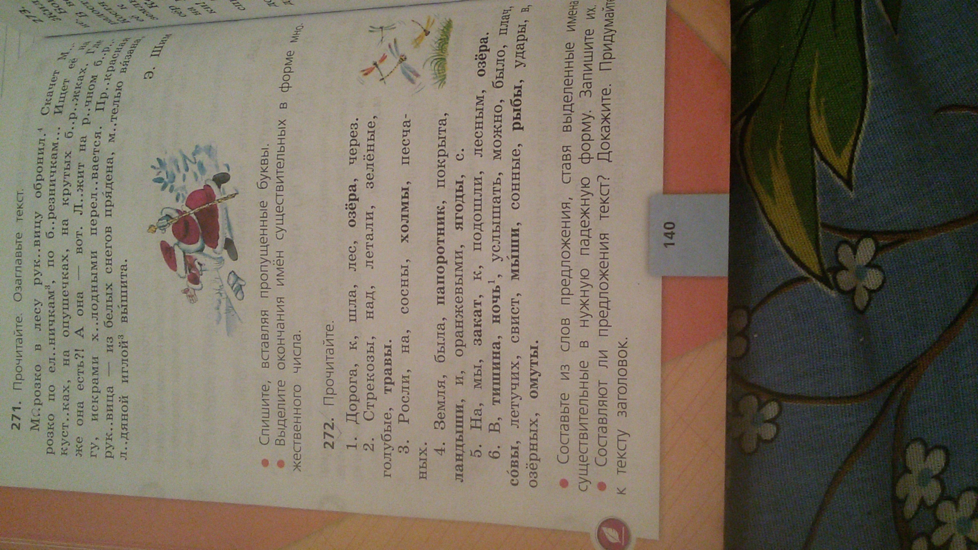 дорога шла через лес к озеру. Голубые стрекозы летали над зелеными травами. На песчаных холмах росли сосны. Земля была покрыта папоротниками и ландышами с оранжевыми ягодами. На закате мы подошли к лесным озерам. В ночной тишине можно было услышать плач совы, свист летучих мышей, сонные удары рыб в озерных омутах.