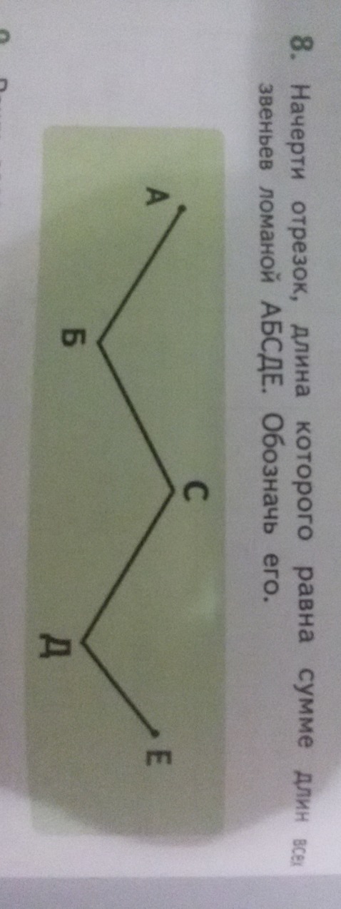 Начерти отрезок, длина которого равна сумме длин всех звеньев ломаной АБСДЕ. Обазначь его.