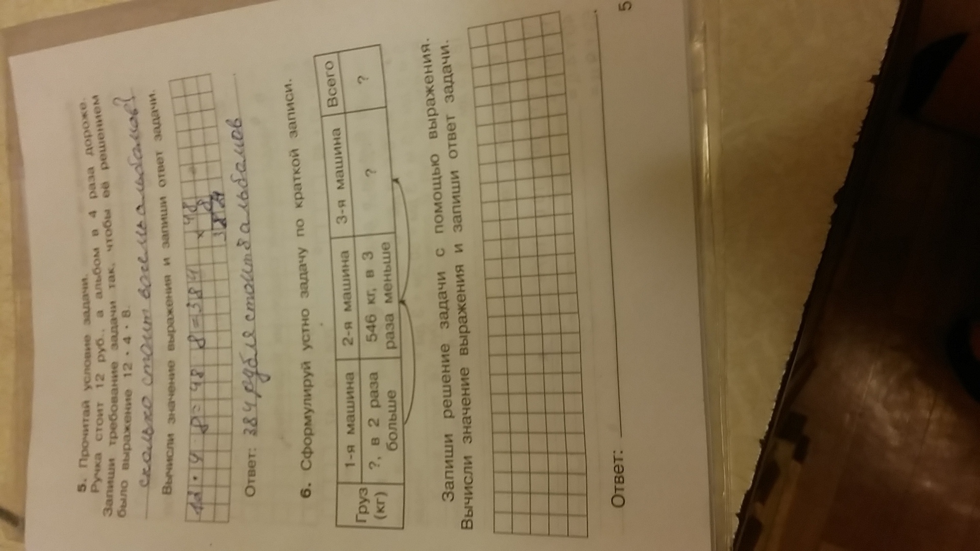 В первой машине в 2 раза больше груза, чем во второй машине, но во второй машине в 3 раза меньше груза, чем в третьей. Найдите сколько груза находится в третьей машине и сколько всего груза в трёх машинах, если во второй машине находится 546 кг груза.