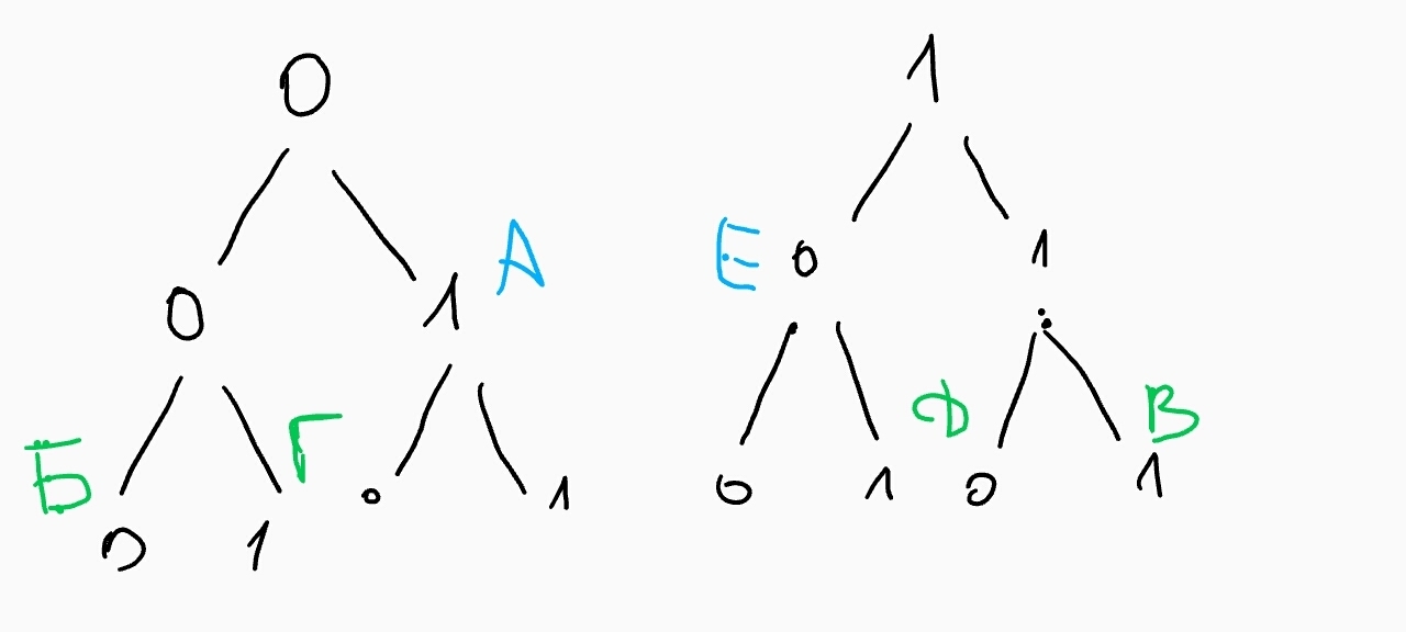 Для кодирования некоторой последовательности, состоящей из букв А, Б, В, Г, Д, Е решили использовать неравномерный двоичный код, удовлетворяющий условию Фано. Для буквы А использовали кодовое слово 01, для буквы Е – кодовое слово 10. Какова наименьшая возможная суммарная длина всех шести кодовых слов? как делать это задание?