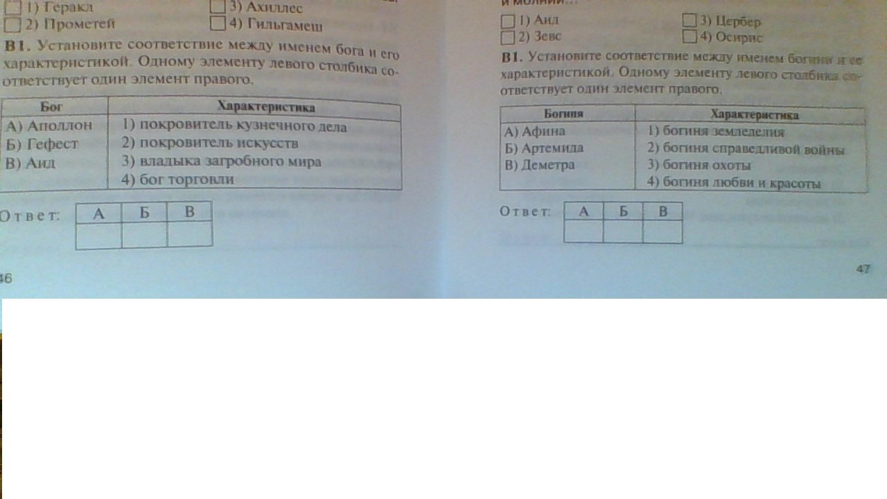 1. A2 Б1 В3 2. А2 Б3 В1
