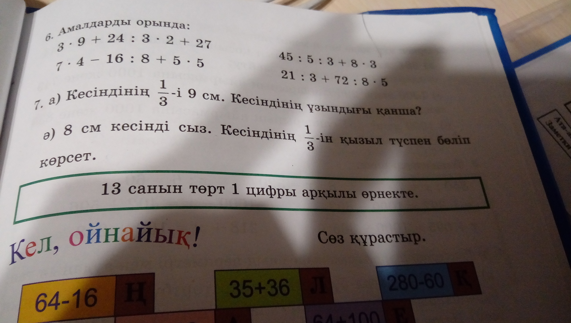 а) Кесіндінің үштен бір бөлігі 9 см.Кесіндінің ұзындығы қанша?