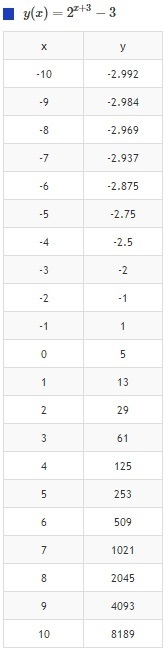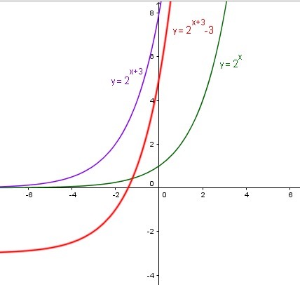 то есть изначально строится график 2^x, затем -3 говорит о том что его надо сместить вниз на 3 единицы, а 2^3 сместит его влево на 3 единицы
