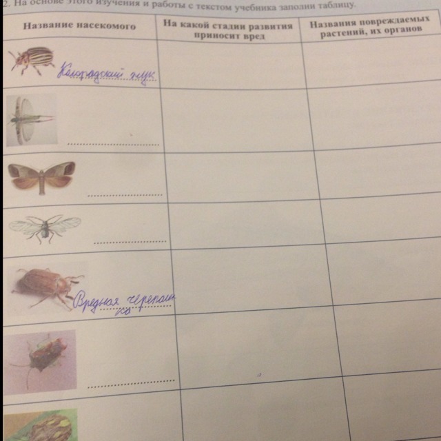 На какой стадии развития приносит вред и название повреждаемых растений, их органов