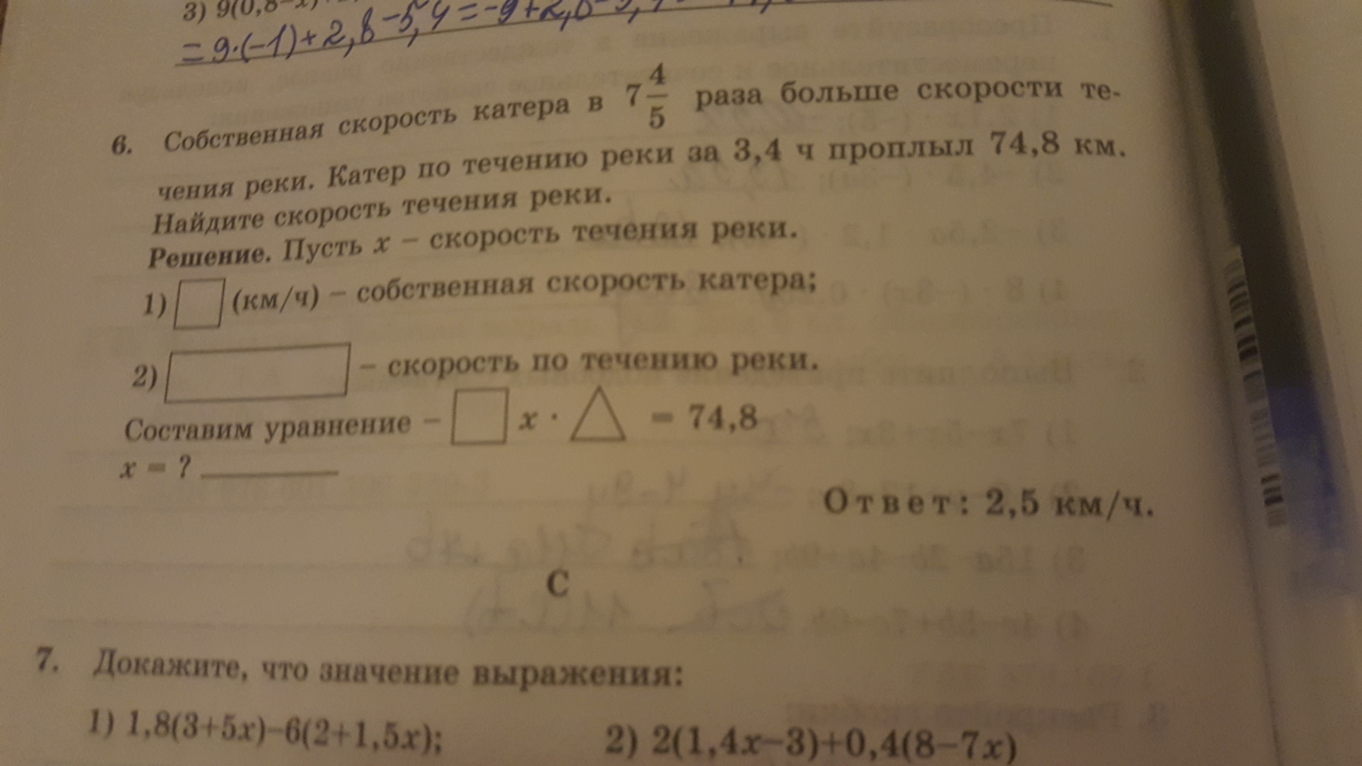 (км/ч) - скорость по течению реки.