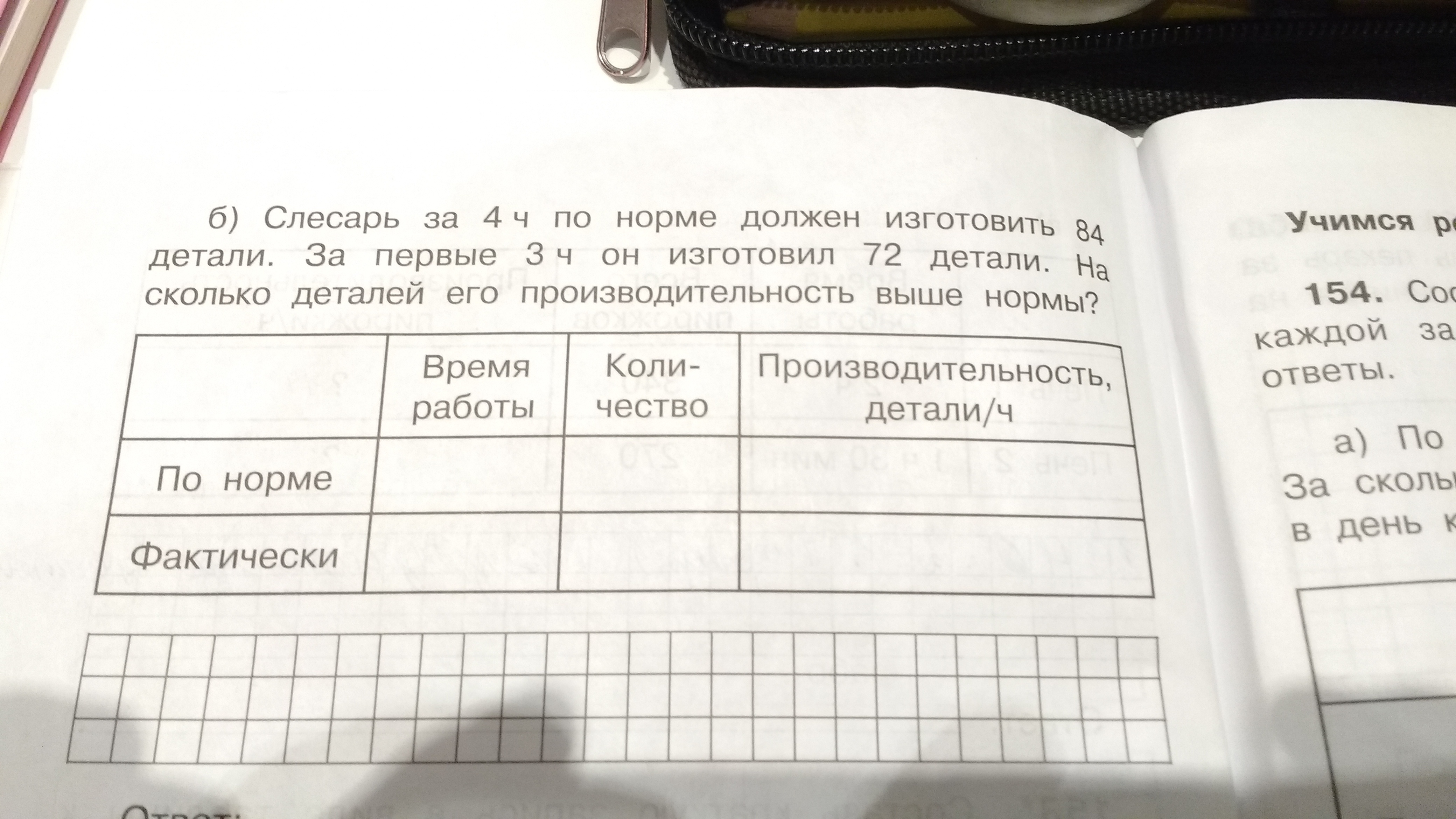 1) 84 : 4 = 21 - должен за 1 час