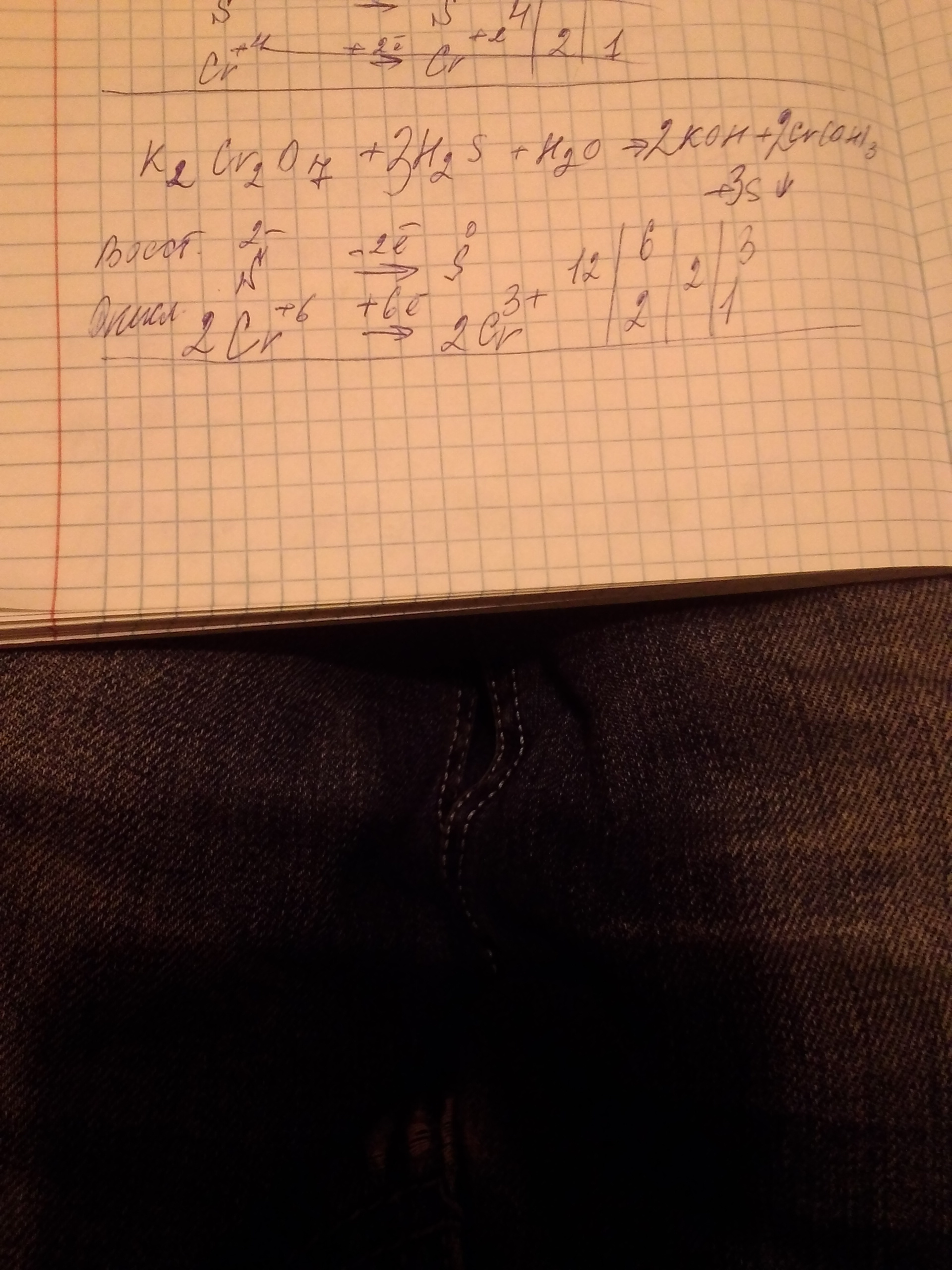 в следующем уравнении реакции определите окислитель и восстановитель , их степень окисления , расставьте коэффициэнты методом электронного баланса K2CrO7+H2S+H2O → KOH + Cr (OH)3+S↓