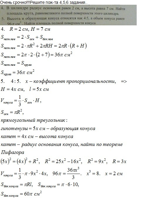 2)Высота и образующая конуса относятся как 4:5 ,а объем конуса равен 96 пи см².