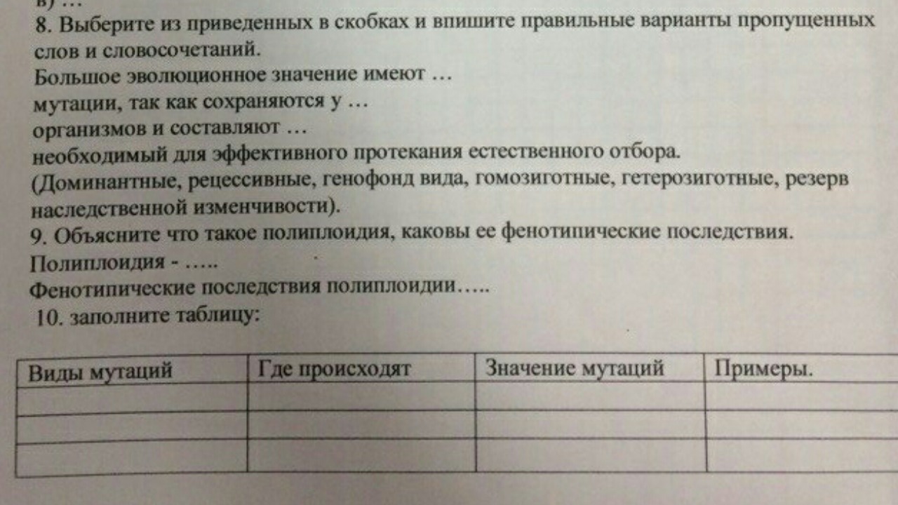 8. Большое эволюционное значение имеют доминантные мутации, т.к. сохраняются у генофонда вида организмов и составляют резерв наследственной изменчивости, необходимый для эффективного протекания естественного отбора.