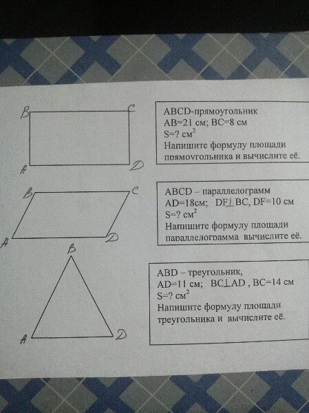 S = AB*BC = 21*8 = 168 см в кв.
