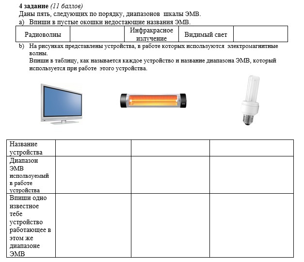 б) 1) Монитор (компьютер), диапазон ЭМВ от 5 Гц до 400 кГц, устройство, работающее в этом же диапазоне - планшет.