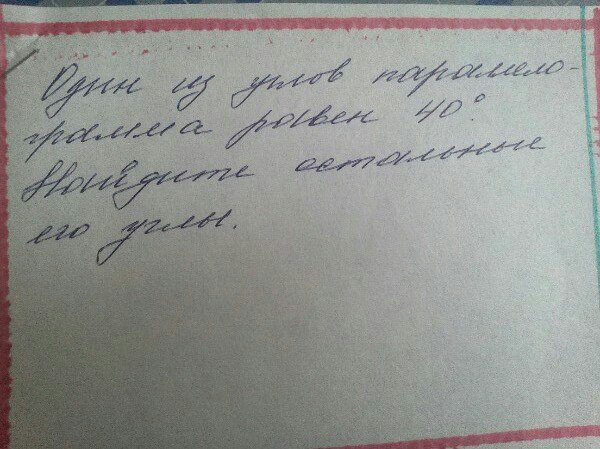 3/, 180 - 40 = 140 градусов. 40 и 140