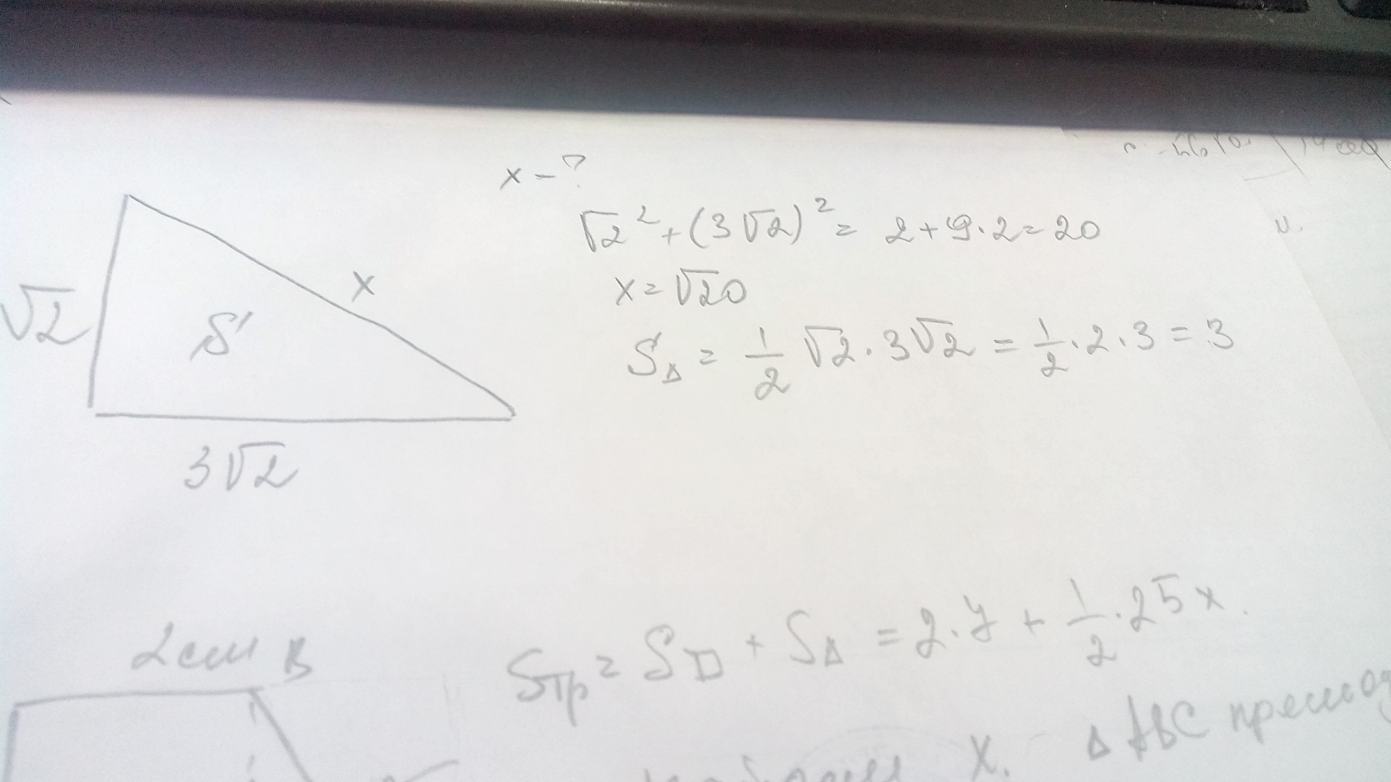 1/, Гипотенуза х=√2+18=√20= 2√5 см