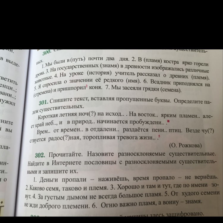 Короткая летняя ночь (И.п.) на исходе (П.п.). На востоке (П.п.) ярким пламенем (Т.п.) алеет край (В.п.) неба (Р.п.), и в природе (П.п.) начинается пробуждение (И.п.).