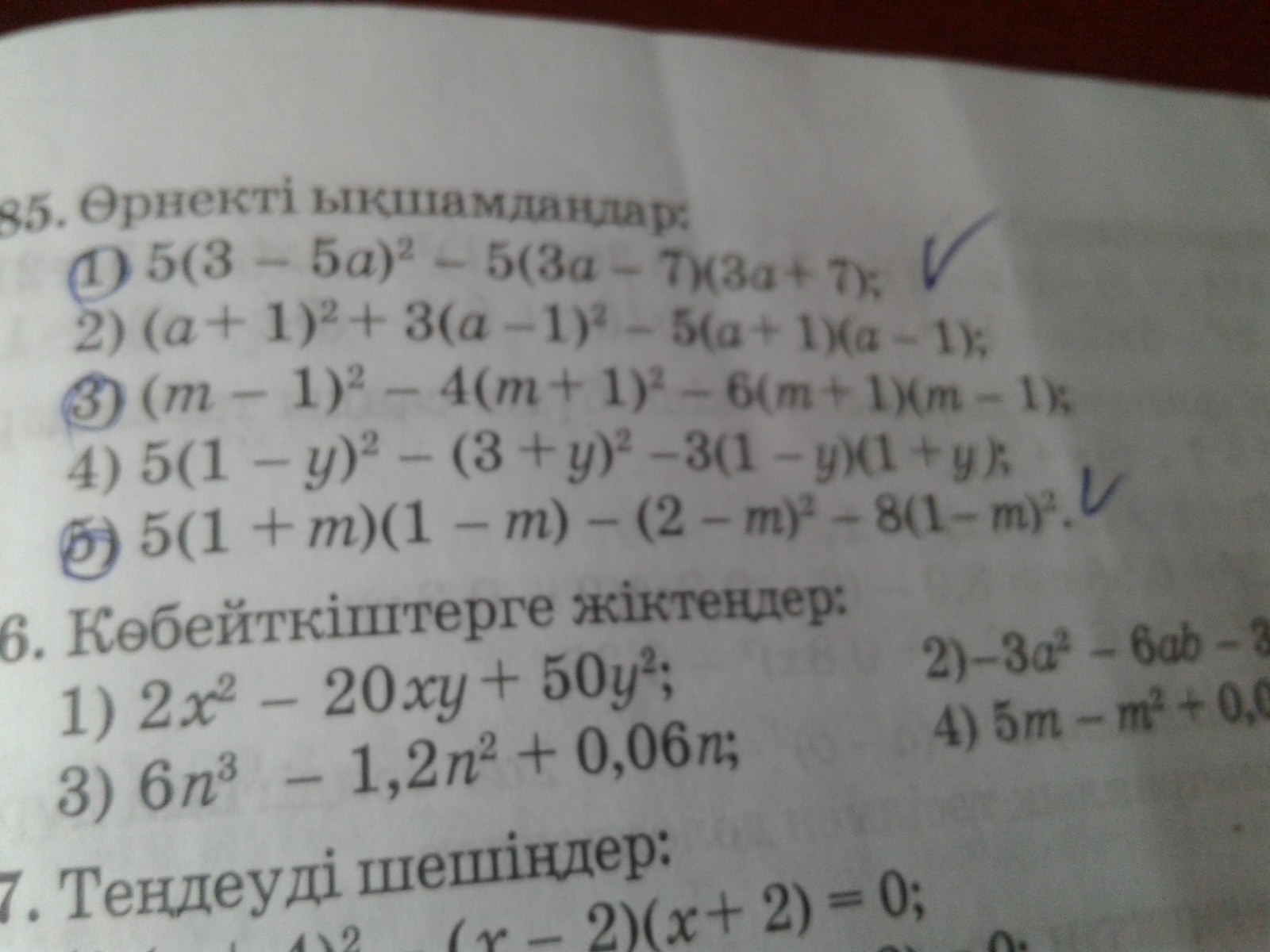 1)5(9-30a+25a^2)-5(9a^2-49)=45-150a+125a^2-45a^2+245=80a^2-150+290