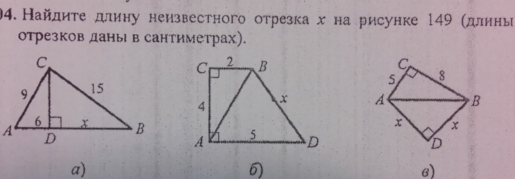 б) Т.к. треугольник ABD равнобедренный, то находим сторону АВ по теореме Пифагора: х²=4²+2² → х²=20 → х=√20см