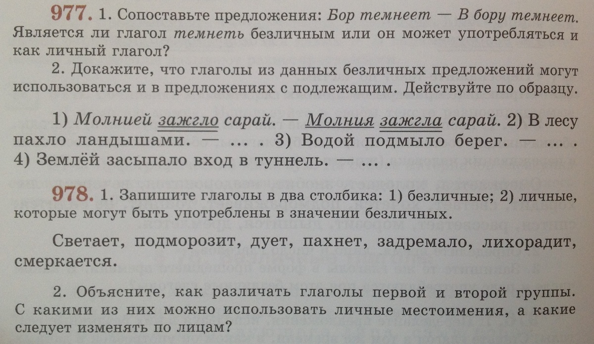 второй столбик: дует,светает,подморозит,пахнет,лихорадит.