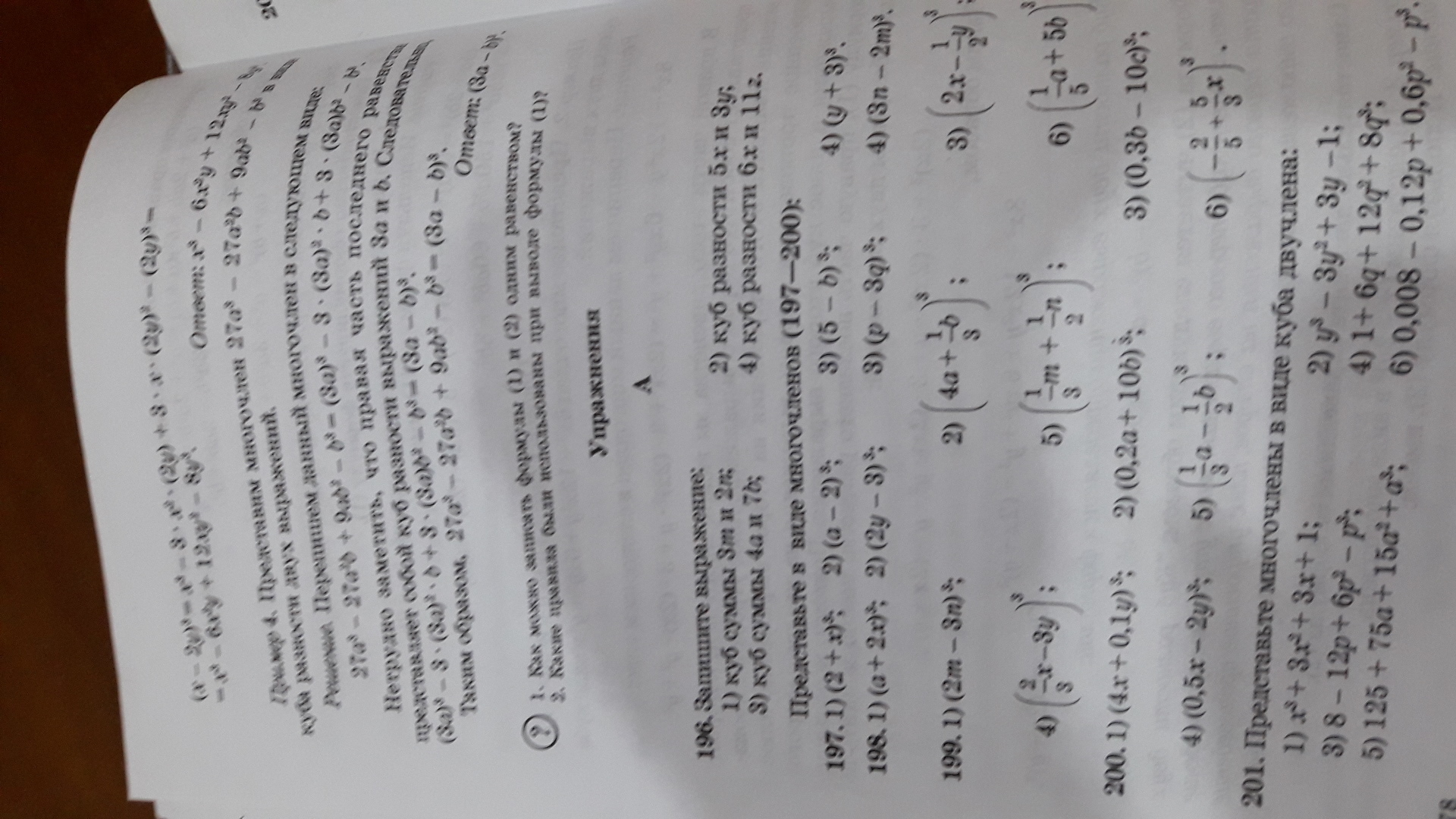 1) а в 3+8x в 3 2)8 x в 3-27 3)p в 3-27 q в 3. 4)27n в 3-8м в 3