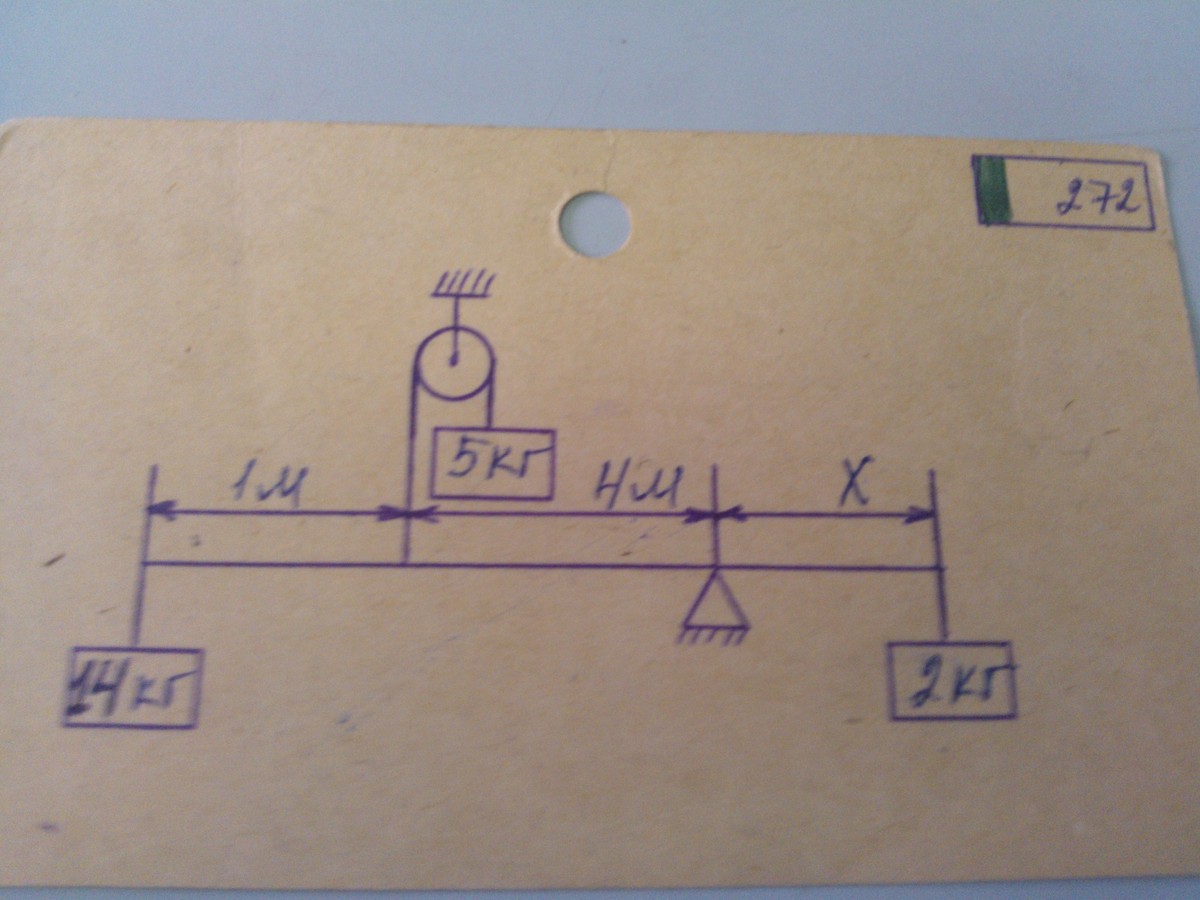 отсюда х, т.е l3=F2*l2*F1*l1/F3=1м*14кг*4м*5кг/2кг=14м