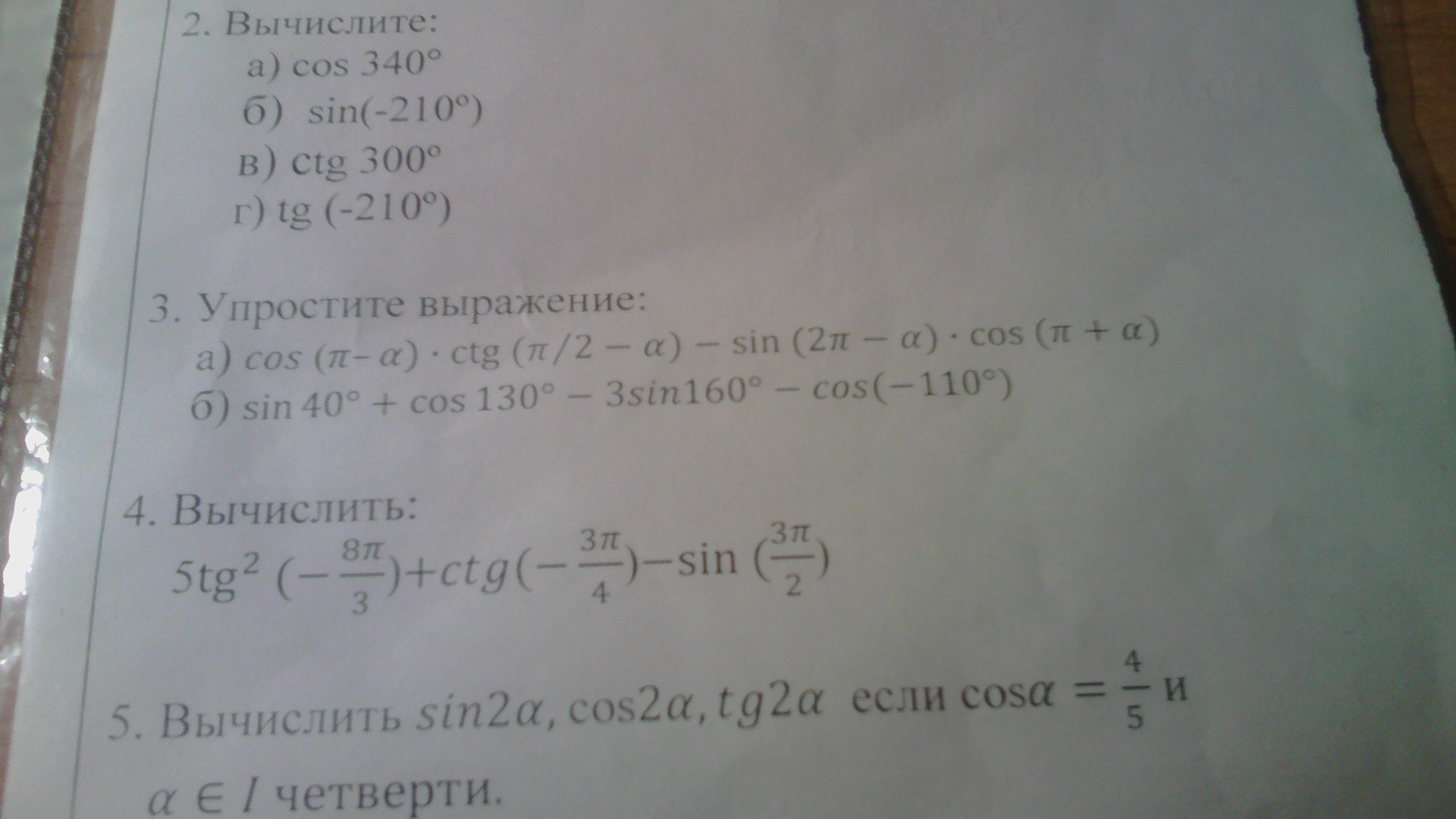 cos(130) = cos(pi/2 + 40) = -sin(40)