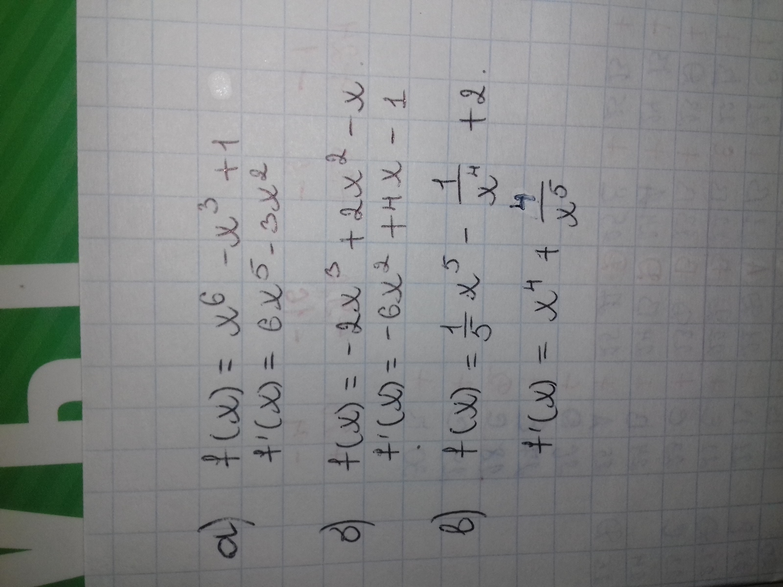 Найдите производную функций a)f(x)=x^6-x^3+1 б) f(x)= -2x^3+2x^2-x.