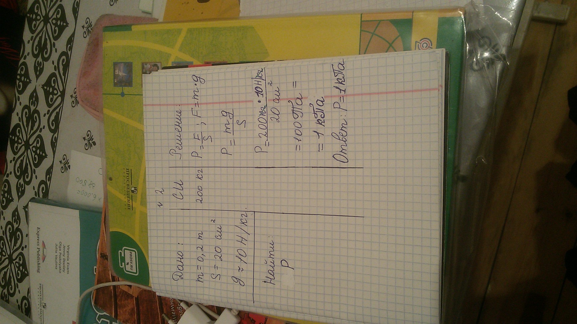 2. Вычислить давление тела массой 0.2т, на площадь 20см².