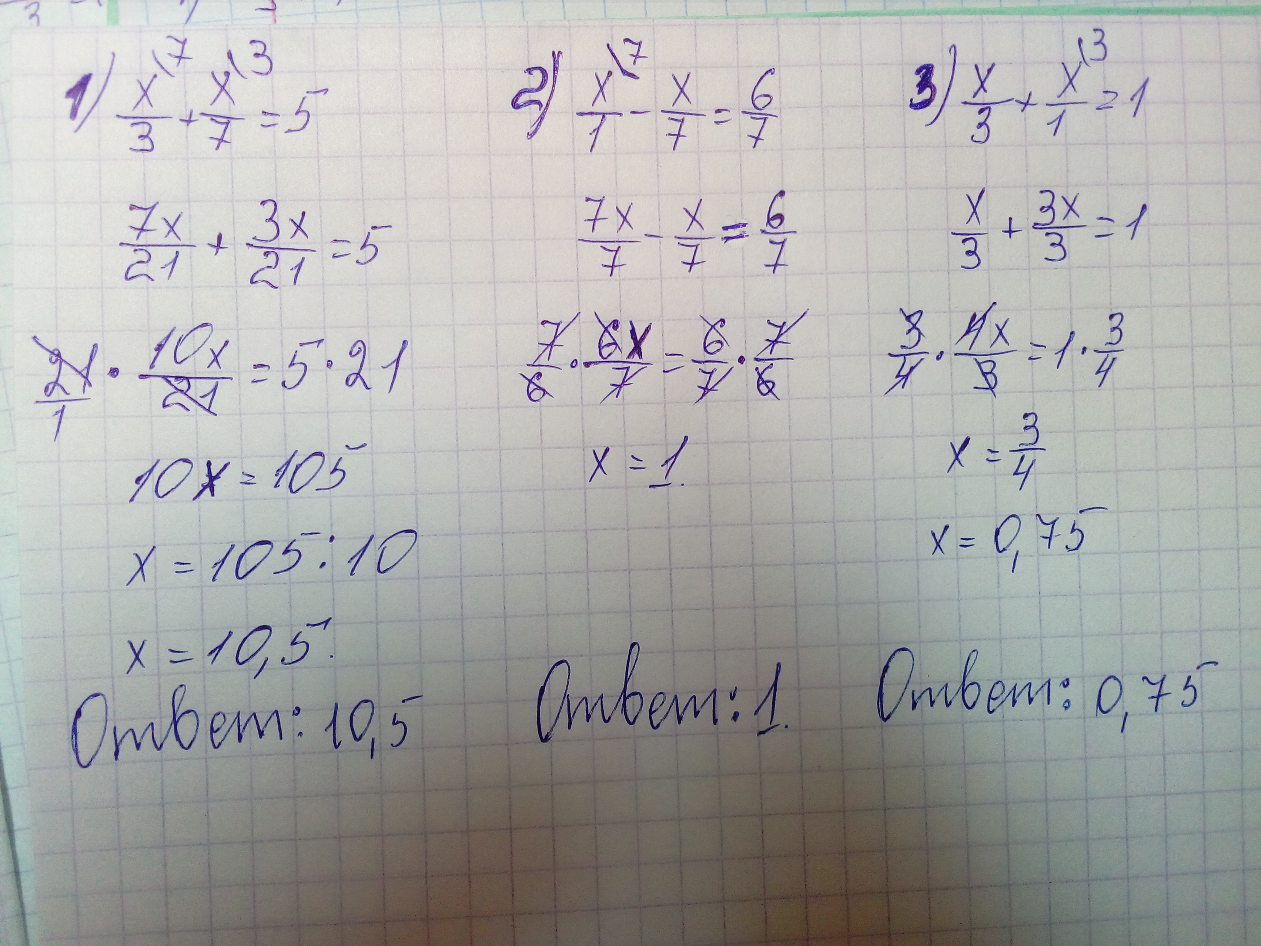 х/3+х/7=5