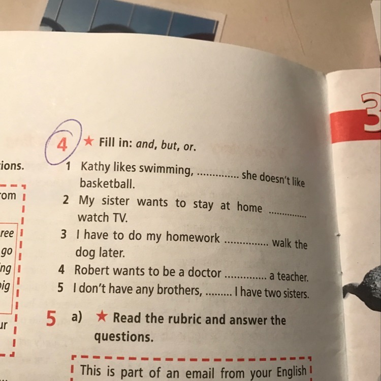 1. but 2. and 3. and 4. or 5. but