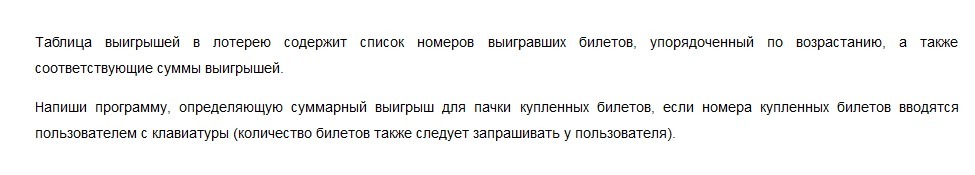При поиске номера билета в таблице выигрышей упорядоченность никак не учитывается!