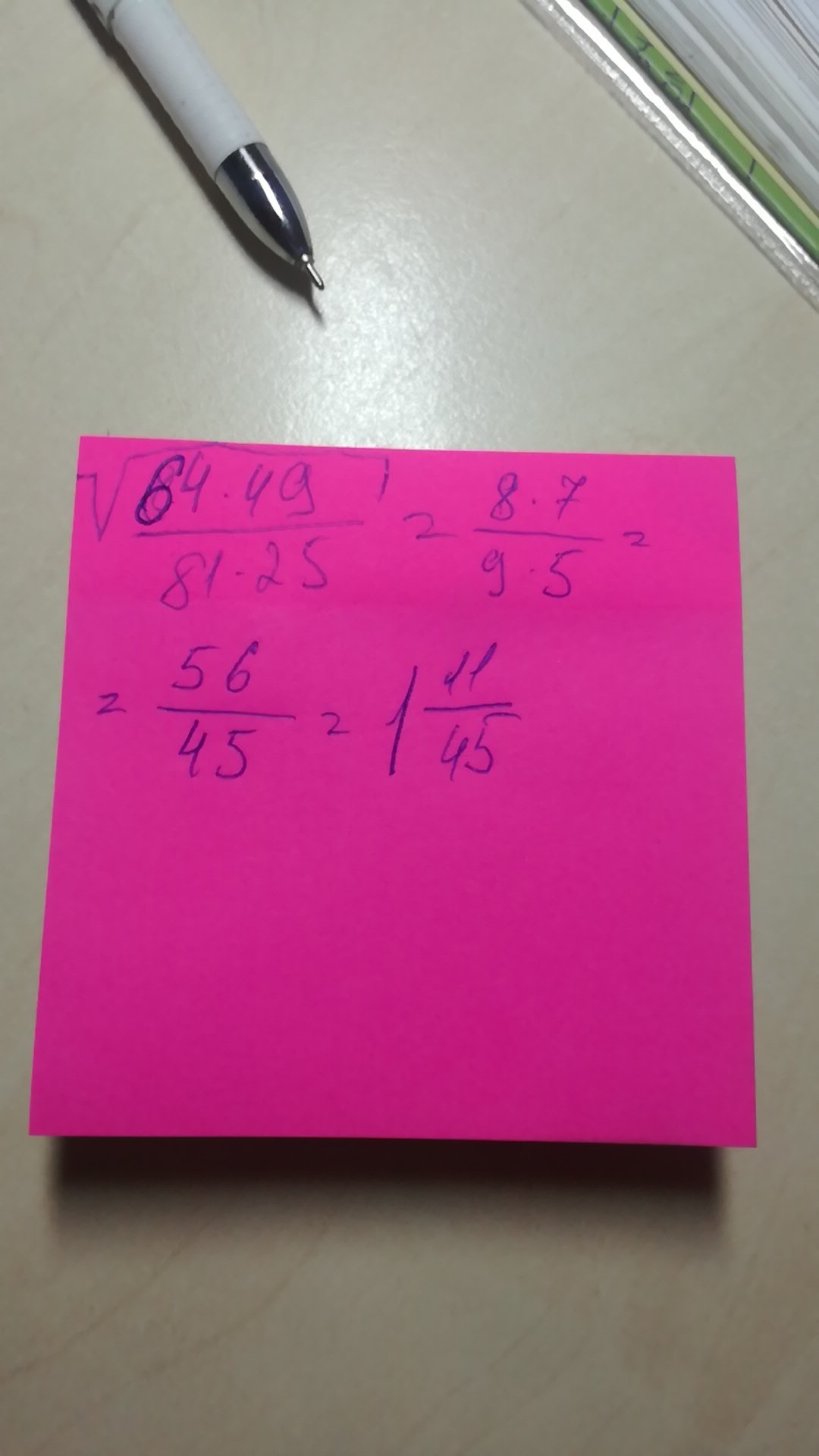 √64*49/√81*25=√64*√49/√81*√25=(8*7)/(9*5)=56/45=1 11/45