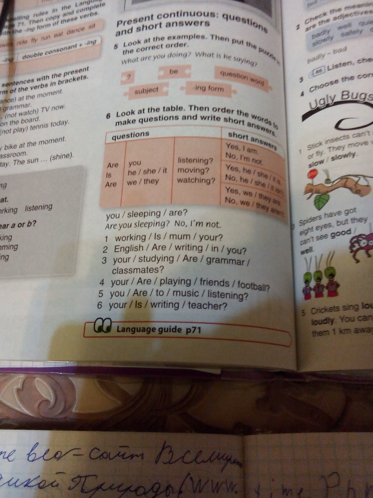 6.Is your teacher writing?