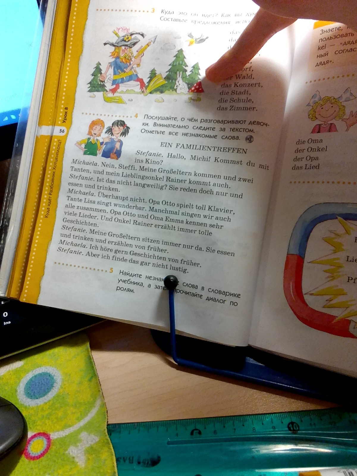 Михаела: Вообще-то нет. Дядя Отто классно играет на пианино, тетя Лиза чудесно поет. Иногда мы все вместе поем. Дедушка Отто и бабушка Эмма знают очень много песен. И дядя Райнер всегда рассказывает классные истории.