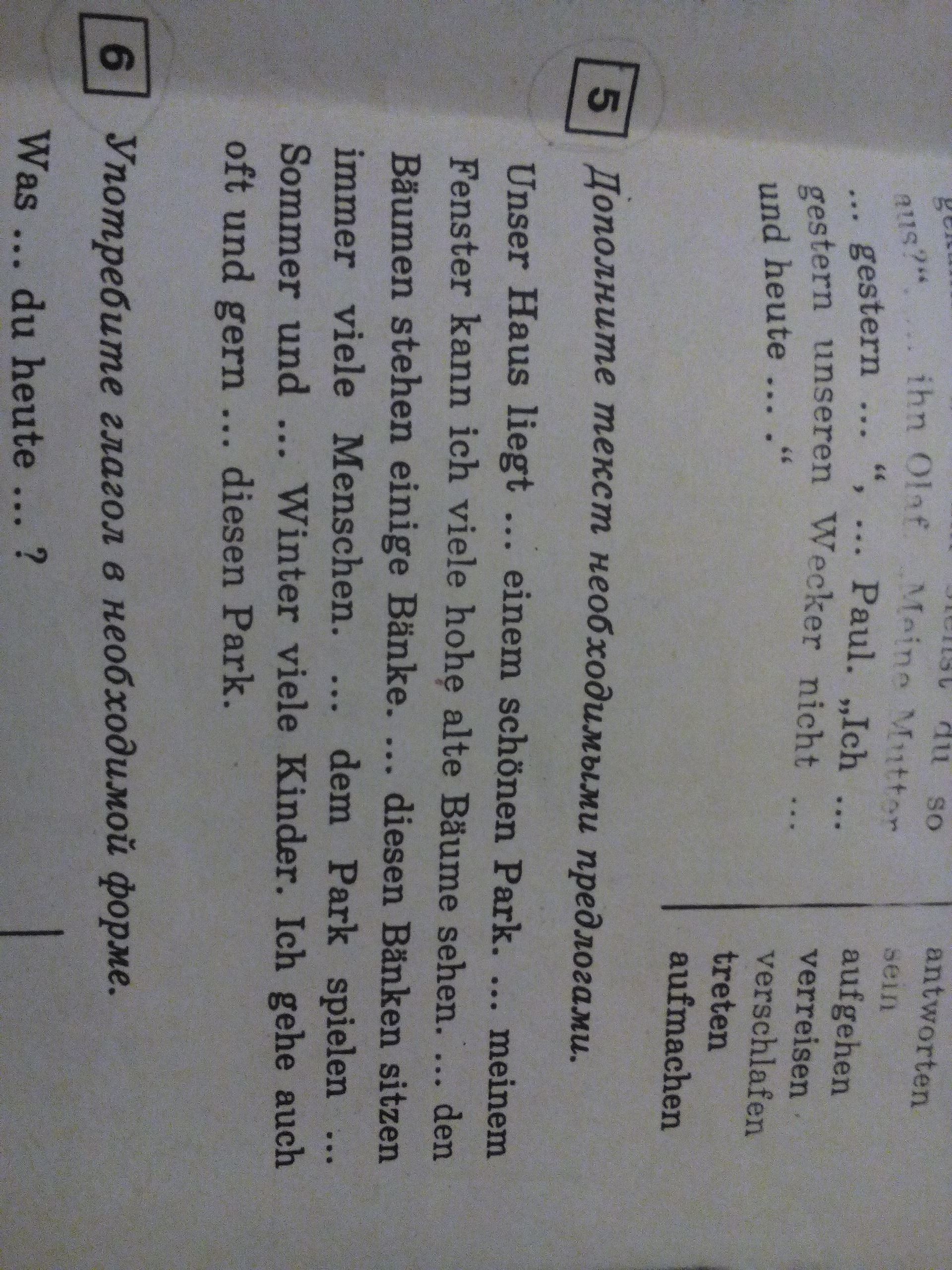 Unser Haus liegt an einem Park. Наш дом стоит возле парка. Aus meinem Fenster kann ich viele hohe alte Bäume sehen. Из моего окна я могу видеть много высоких старых деревьев. Unter den Bäumen stehen einige Bänke. Под деревьями стоят несколько скамеек. Auf diesen Bänken sitzen immer viele Menschen. На этих скамейках всегда сидит много людей. In dem Park spielen im Sommer und im Winter viele Kinder. В парке зимой и летом играет много детей. Ich gehe auch oft und gern durch diesen Park. Я часто и охотно хожу через парк.