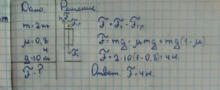 С какой минимальной силой нужно прижать резиновый брусок массой 2 кг к вертикальной бетонной стене, чтобы он не скользил вниз? Кооффициент трения между резиной и бетоном равен 0.8.