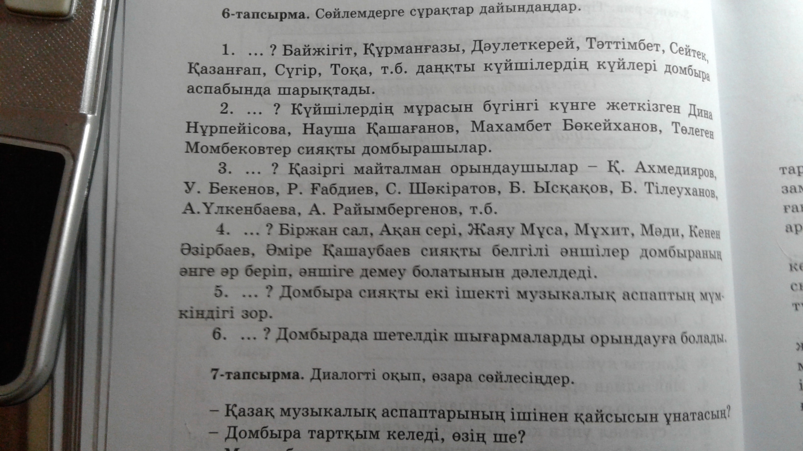 3)қазіргі майталман орындушылар кім 4)Кімдер әншіге домбыра демеу бола алатынын әлелдеді