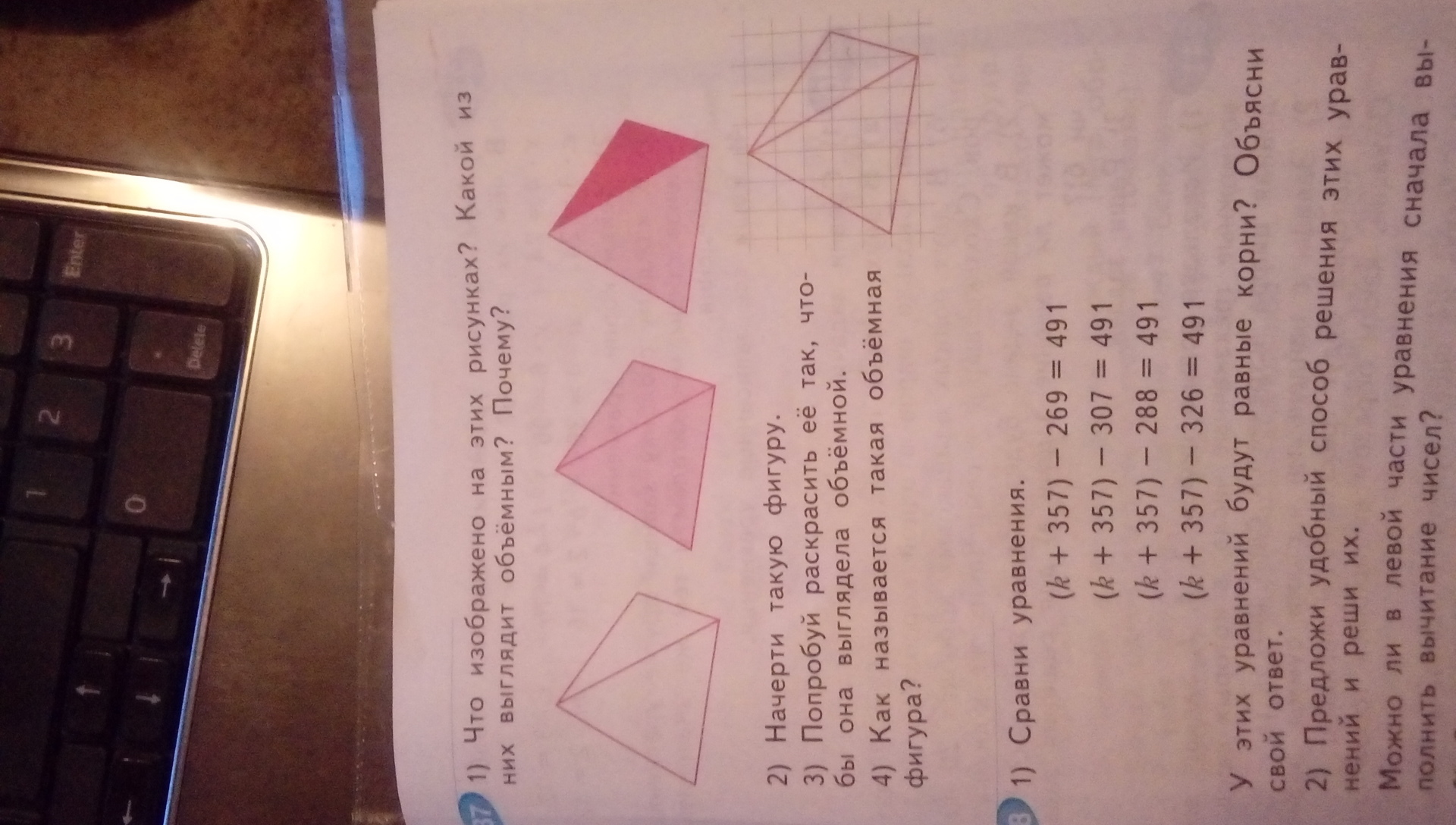 3 класс Учебник Аргинская,задание 237 стр 119.Что изображено на этих рисунках?Какой из них выглядит объемным?Почему?