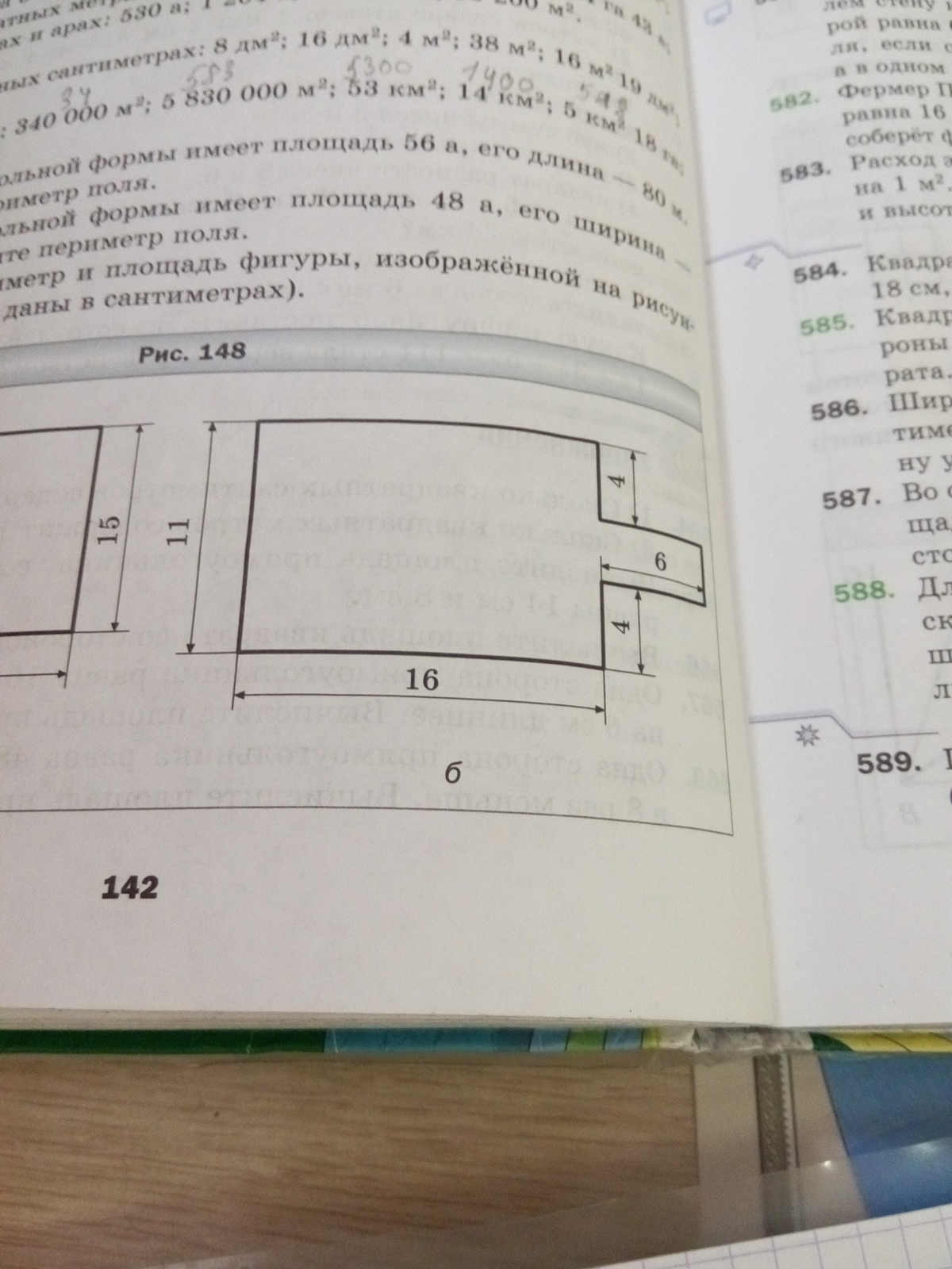 вычислите периметр и площадь фигуры, изображенной на рисунке 148(размеры даны в сантиметрах) ПОД БУКВОЙ Б РЕШИТЬ