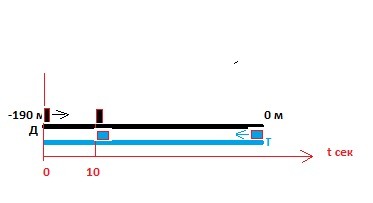 Как-то так.t=10 cек. Место -150 м. Посмотрите рисунок.