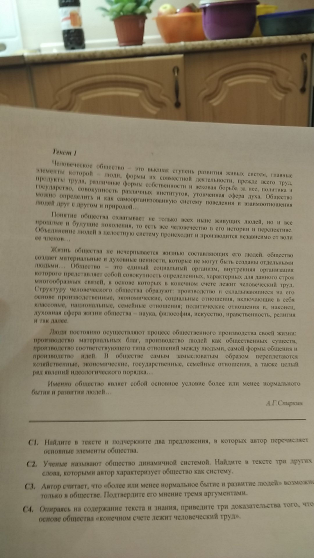 C1. Предложение в третьей абзаце, начинается со слов "Структуру человеческого общества образуют..."